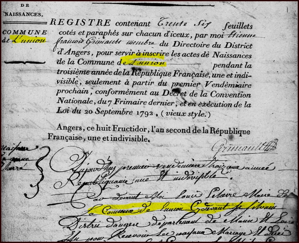Union est le nom révolutionnaire de Saint-Sylvain-d’Anjou.