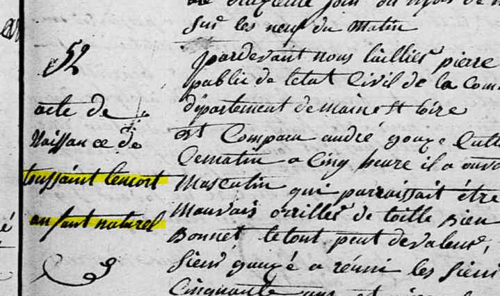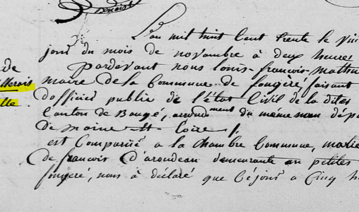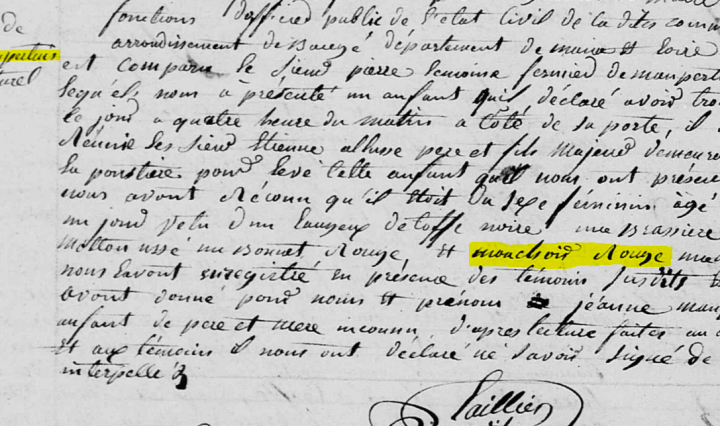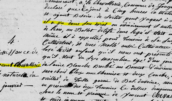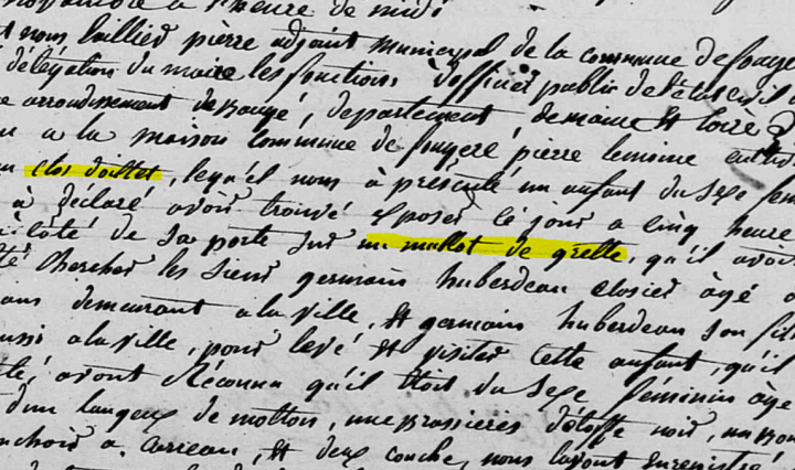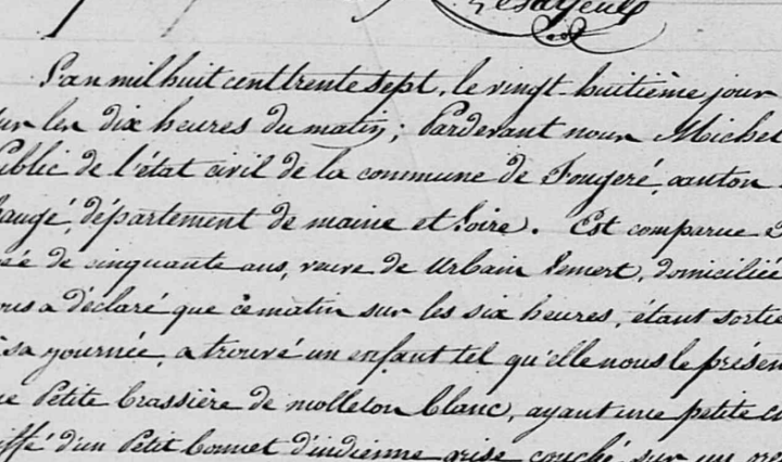 On les appelle enfants trouvés, exposés, naturels, abandonnés… ou encore illégitimes, nés de père et de mère inconnus, voire même bâtards… Au début du XIXème siècle, ils semblent proliférer dans la commune de Fougeré mais ce phénomène est loin d’être … Continuer de lire Les enfants naturels de Fougeré, 1822-1838
