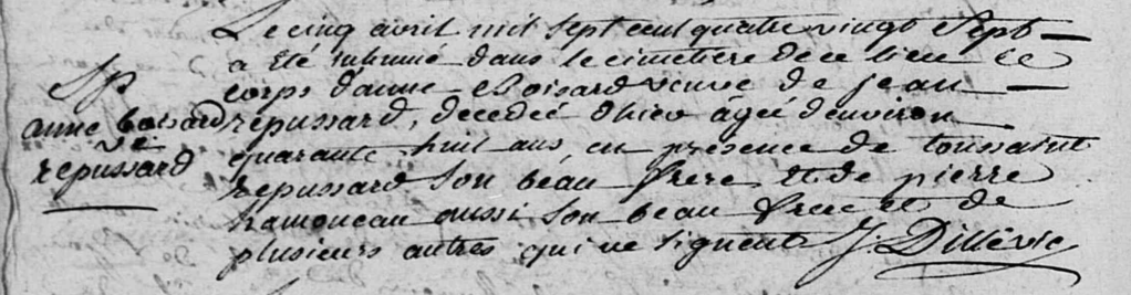 Sept ans plus tard, Anne rejoint dans la mort son mari et ses enfants. Qui s’occupe de la petite Jeanne, seule survivante de la famille ? Peut-être Toussaint REPUSSARD, l’un de ses oncles paternels, à moins que cela ne soit Pierre HAMONEAU, son oncle maternel.