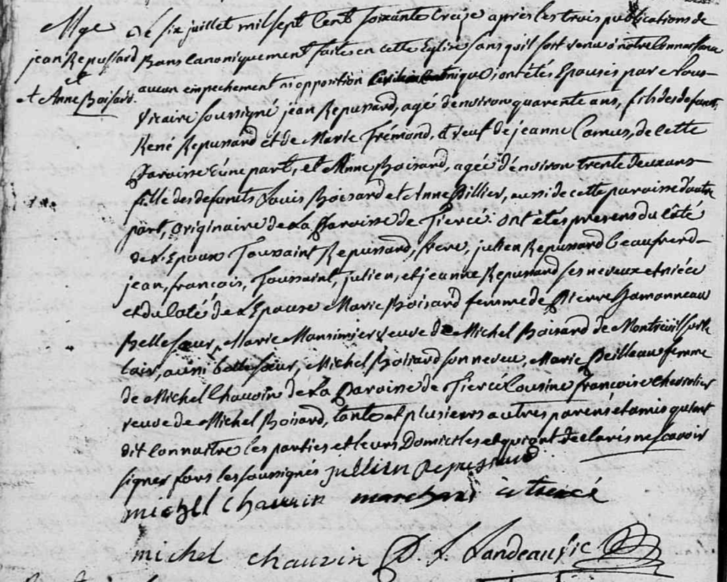 Mariage avec Jean REPUSSARD le 6 juillet 1773 à Villevêque