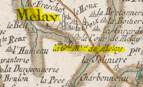 Le dix septieme juin mil six cent quatre vingt huit est née et a esté batizée dans l’Eglise de Melay par moy vicaire soussigné Françoise fille de Michel HOUET laboureur demeurant à La Métairie de Melay et Françoise DEFOIS sa femme, a esté parin Louis HOUET demeurant au Ry, marraine Françoise fille de Jean ROCHART et de Françoise EGRETAU demeurant domestiquement à ladite métairie de Melay, lesquels ne scavent signer.