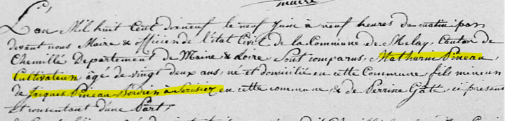 Mathurin Jacques PINEAU Métayer de La Basse Brosse x 1819 Renée TIJOU