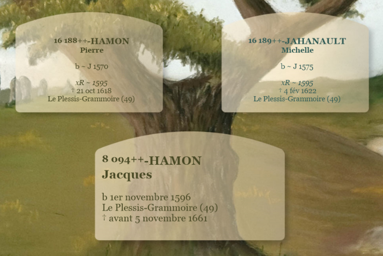 Génération 13 – Sosa 8094 – Génération 13 – Sosa 8158 Fils de Pierre HAMON et de Michelle JAHANNAULT, Jacques HAMON, qui était parfois nommé Honnête Homme et qui épousa la fille d’un sergent royal, garde tout le mystère sur … Lire la suite Jacques HAMON (1596-/1661)