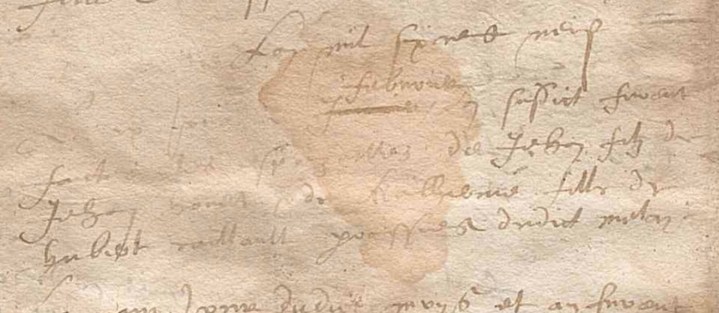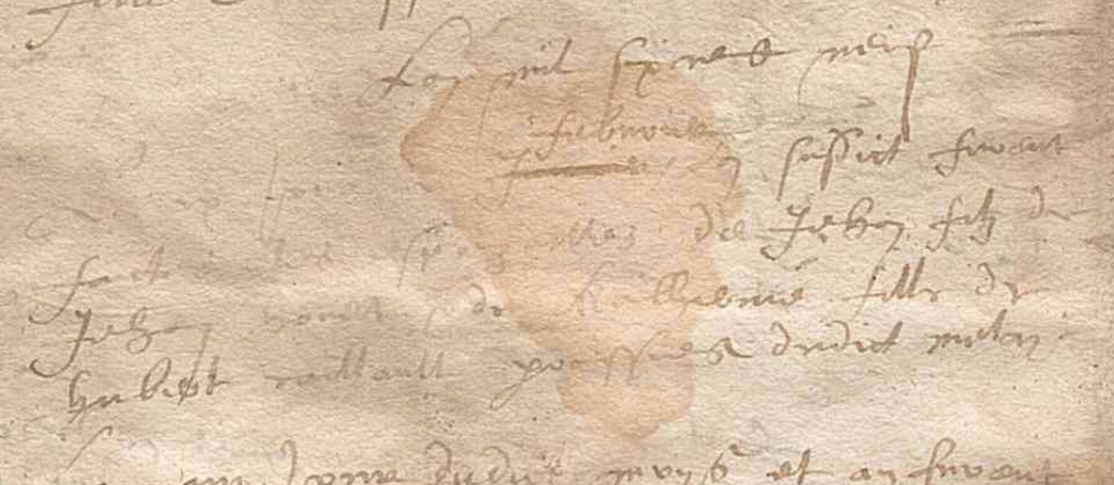 Le 9 jour de febvrier an susdict furent faictes les espouzailles de Jehan fils de Jehan HOUET et de Catherine fille de Hubert CAILLAULT paroissiens dudit Melay.