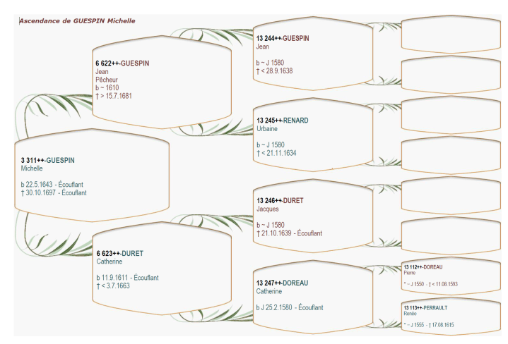 Michelle GUESPIN épouse Pierre HERBELOT vers 1665 à Ecouflant.