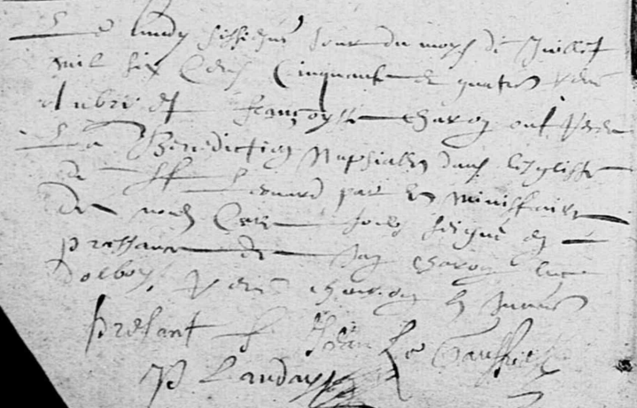 Le 6 juillet 1654, René AUBRY épousait à Angers, paroisse Saint-Léonard, Françoise CHARON. L’acte de mariage n’est malheureusement pas filiatif.