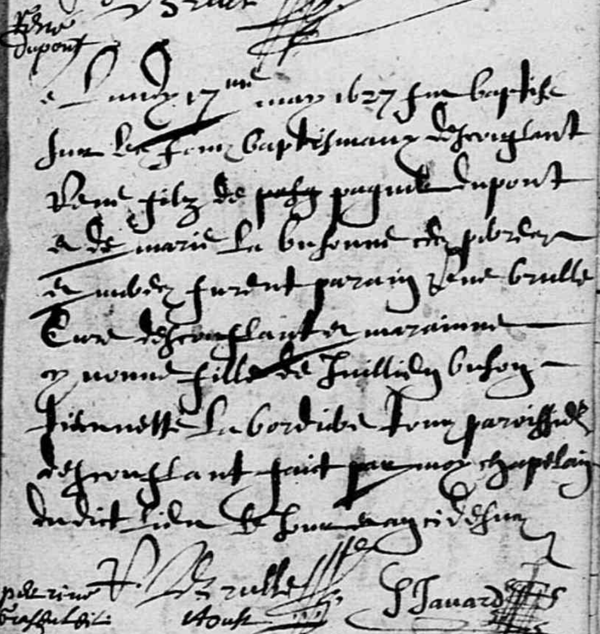 René DUPONT se marie, vers 1662, avec Guyonne LECOMMANDEUX. Son acte de mariage n’a pas été retrouvé.