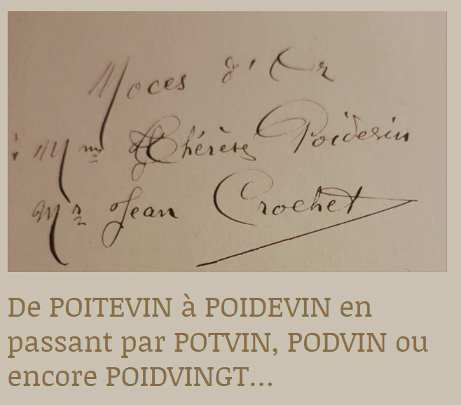 - Jeanne POIDEVIN (1858-?) mariée le 10 janvier 1880 à Villevêque avec Pierre CROCHET.