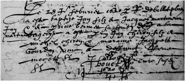 Fils de Jacques MARTINEAU et de Perrine BERNIER, son parrain est Jean CHIRON fils de Michel CHIRON, sa marraine Jacquette GOURDON veuve de René MOCET.