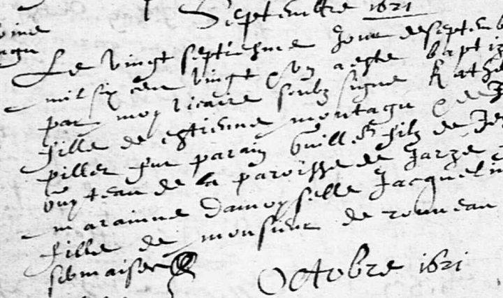 Je poursuis mon exploration des anomalies enregistrées par Geneanet sur mon arbre. Voici l’histoire de Jeanne BARILLET, mystérieuse aïeule de Jacques MEIGNAN. Lorsque Jacques MEIGNAN se marie, en 1692, on mentionne que son aïeule, Jeanne BARILLET, lui a fourni un … Continuer de lire B comme BIZARRE ou l’histoire de la mystérieuse aïeule de Jacques MEIGNAN